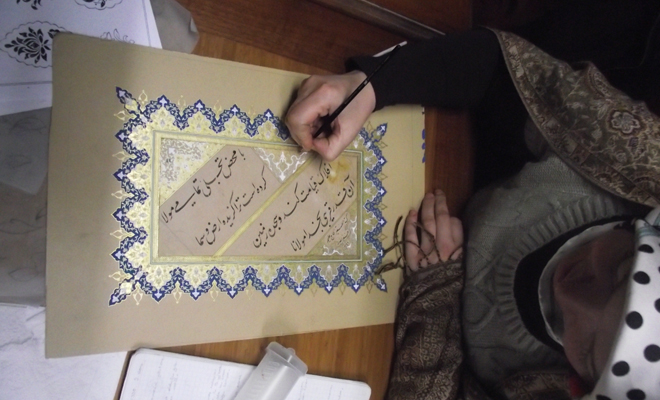 Birkaç saatlik ebru meşkinin ardından Tezhip sevdalılarını ağırlıyor Konağımız. Saat 14.00’da değerli müzehhibe Özlem Gören, bu sanata gönül veren talebeleriyle bir araya geliyor ve çizgilerin ahenginde bir yolculuk başlıyor. Fırçanın bu kadar zarif ve aynı zamanda bu kadar ölçülü kullanılabildiği ender sanatlardan biri olan Tezhip sanatı, yeni genç yeteneklerin de kendisiyle müşerref olduğu böylesine güzel bir mekânda ihtişamını sürdürmeye devam ediyor…