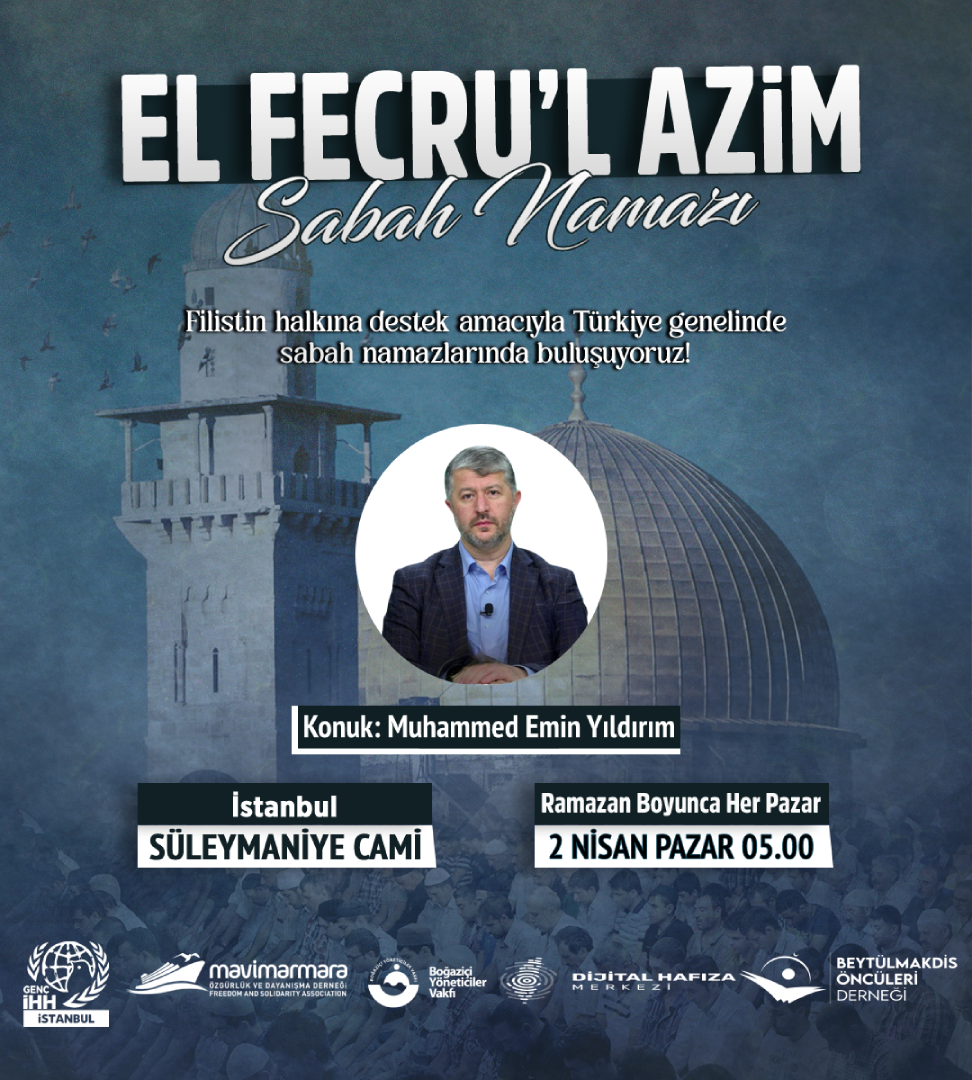 Filistin halkına destek amacıyla gerçekleştirilen El Fecru’l Azim Sabah Namazının bu yılki ikinci buluşmasına bizler de iştirak ediyoruz.